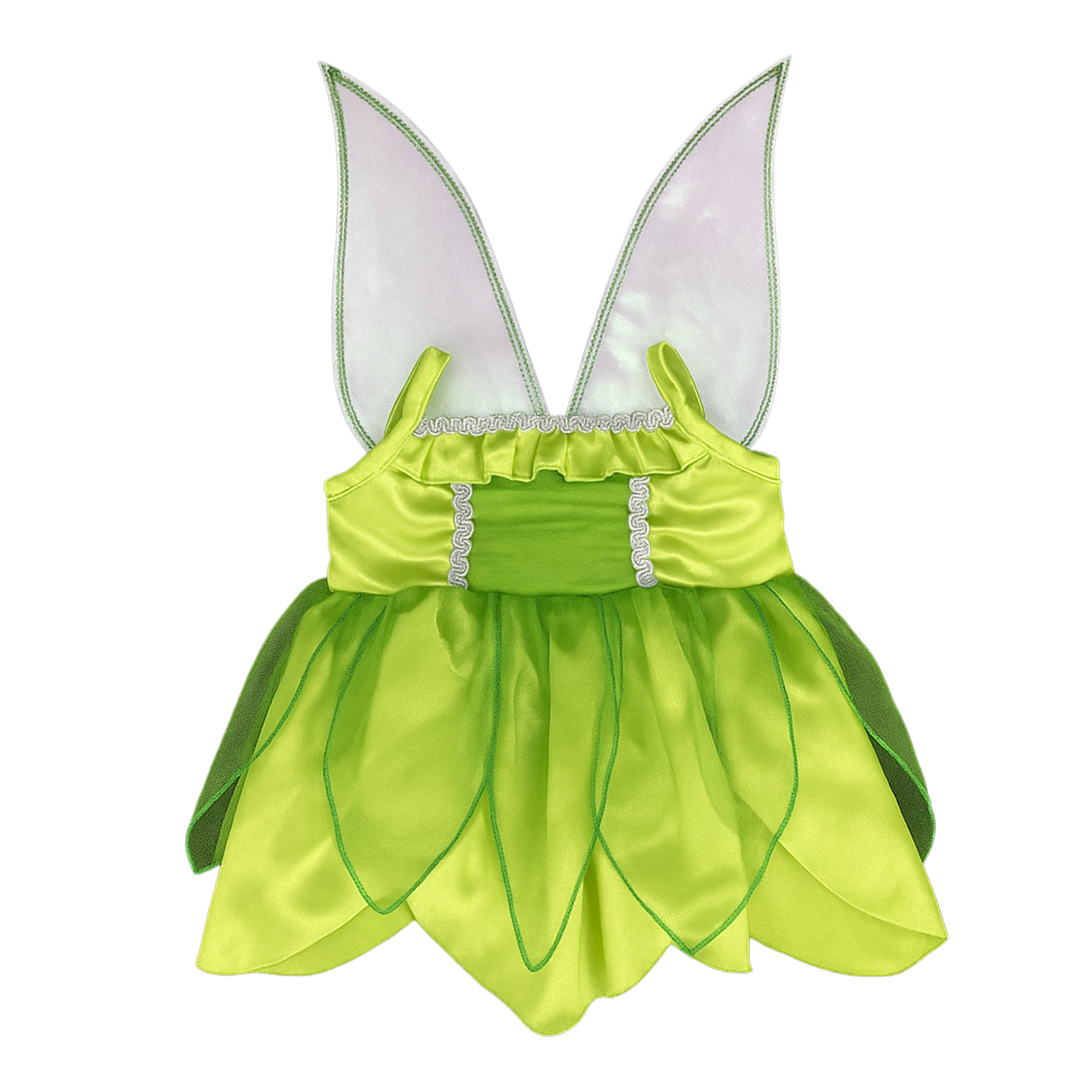 This enchanting green satin dress is perfect for little forest fairies. With delicate frills and shimmering silver trim, it’s full of magical charm. The handkerchief style hem and glistening white wings make it easy for your Teddy Tastic bear to flutter off on their next woodland adventure. A delightful gift for birthdays, special surprises, or dress-up fun!