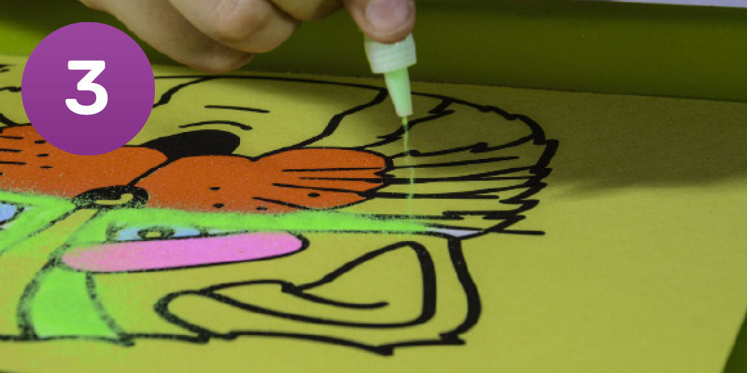 Simply slide your sand art stick under the yellow sections to reveal the sticky side underneath.
