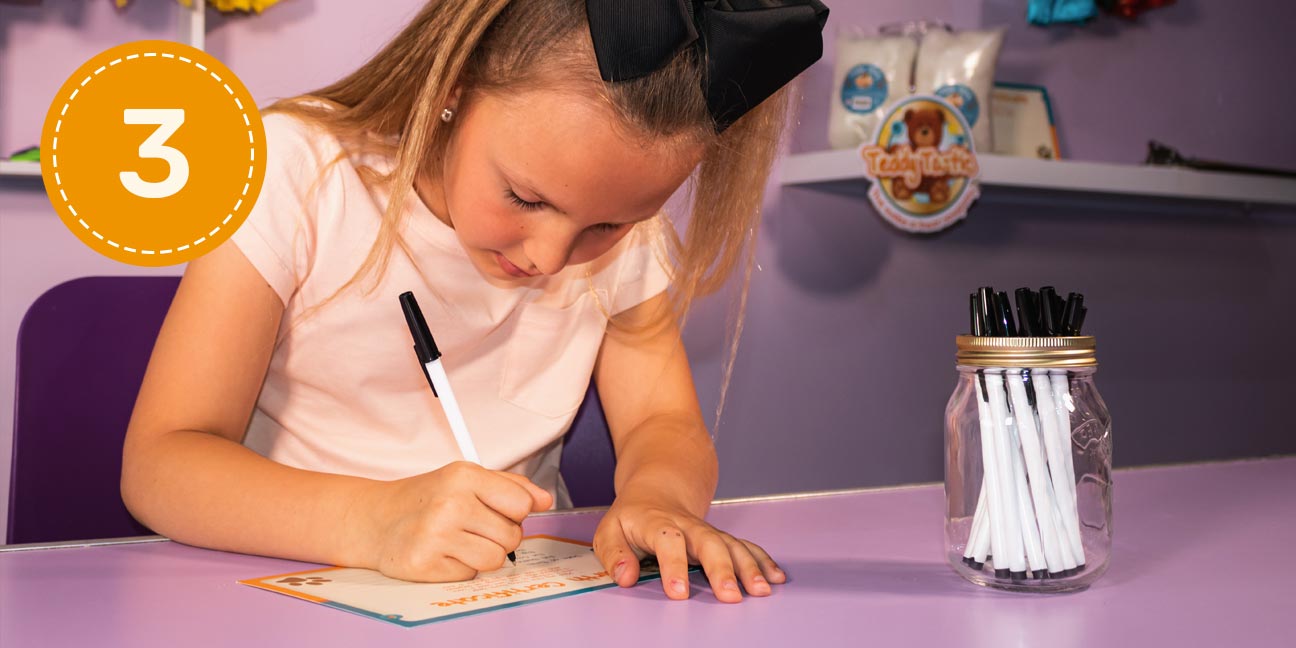 Carefully fill out your teddy bear's friendship certificate. Your teddy is almost ready for a cuddle!